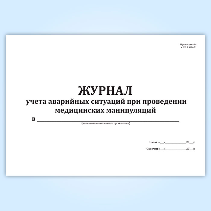 Журнал учета аварийных ситуаций при проведении медицинских манипуляций (СанПиН 3.3686-21) в Черкесске купить