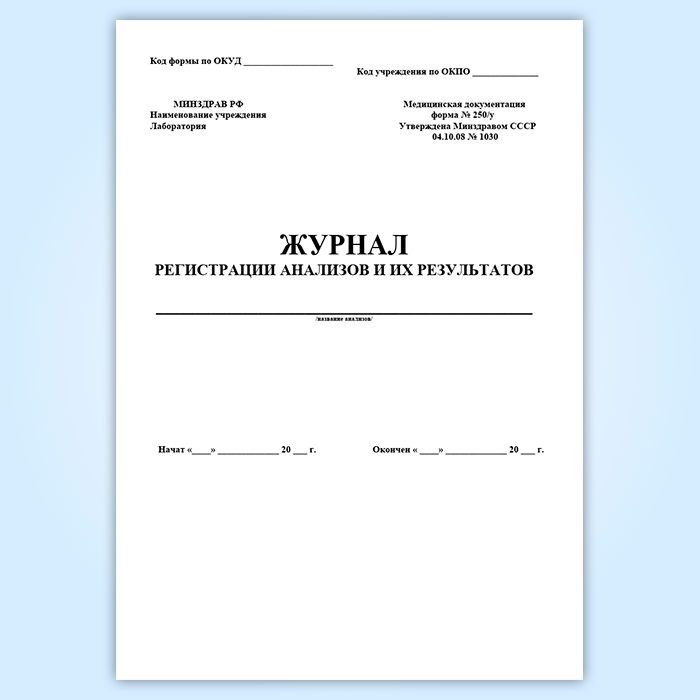 Журнал регистрации анализов и их результатов (форма 250/у) в Черкесске купить