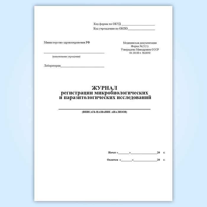 Журнал регистрации микробиологических и паразитологических исследований (форма 252/у) в Черкесске купить