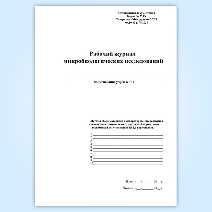 Рабочий журнал микробиологических исследований (форма 253/у) в Черкесске купить