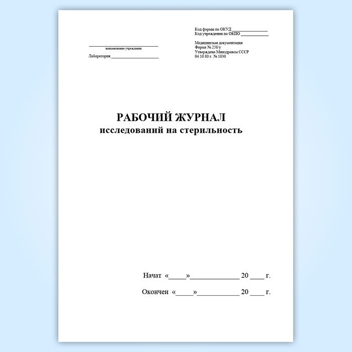 Рабочий журнал исследований на стерильность (форма 258/у) в Черкесске купить