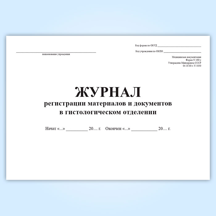 Журнал регистрации материалов и документов в гистологическом отделении (форма 190/у) в Черкесске купить