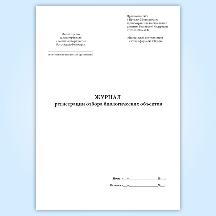Журнал регистрации отбора биологических объектов (форма 450у-06) в Черкесске купить