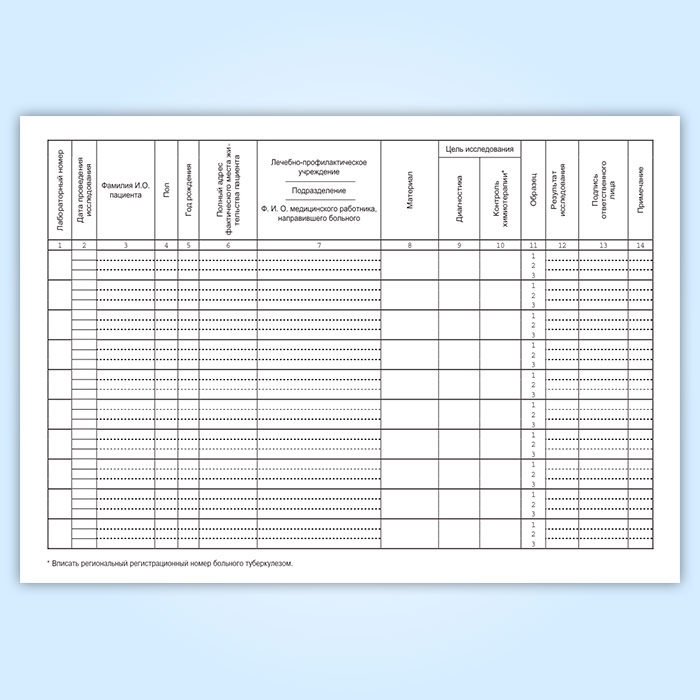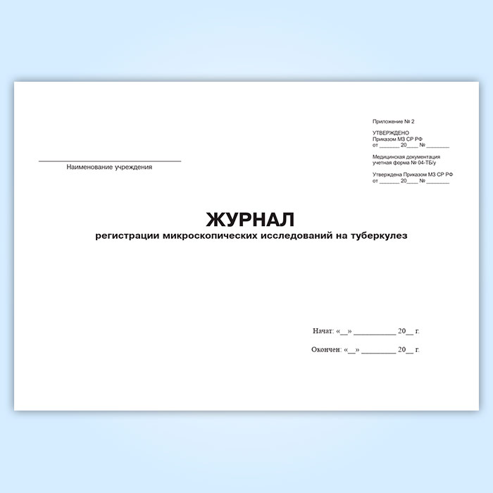 Журнал регистрации микроскопических исследований на туберкулез (форма 04-ТБ/У) в Черкесске купить