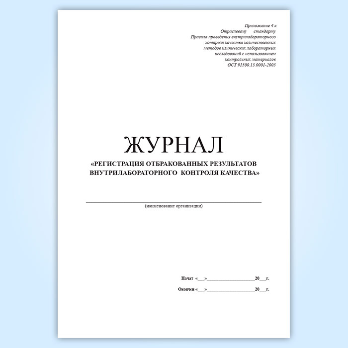 Журнал регистрации отбракованных результатов внутрилабораторного контроля качества в Черкесске купить
