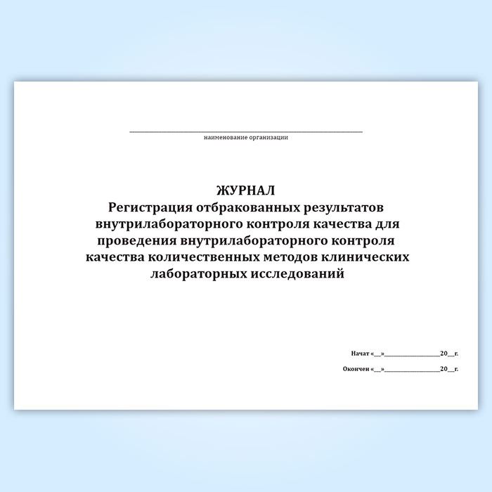Журнал «Регистрация отбракованных результатов внутрилабораторного контроля качества для проведения внутрилабораторного контроля качества количественных методов клинических лабораторных исследований» в Черкесске купить