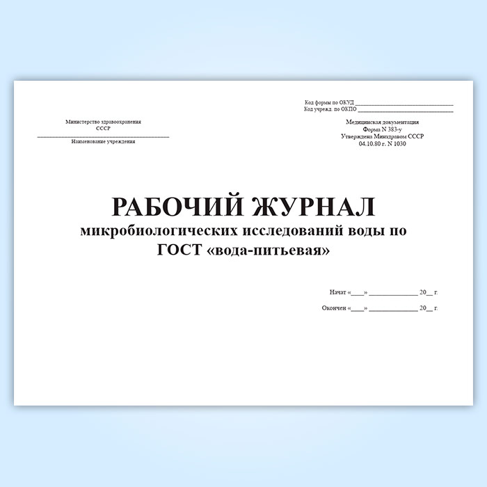 Рабочий журнал микробиологических исследований воды по ГОСТ вода-питьевая (форма 383/у) в Черкесске купить