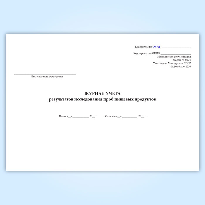 Журнал учета результатов исследования проб пищевых продуктов (форма 346/у) в Черкесске купить
