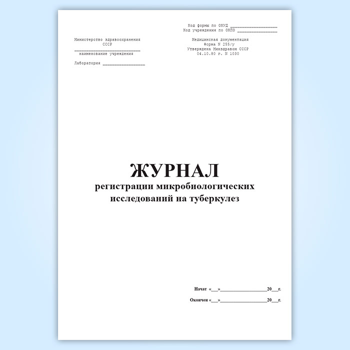 Журнал регистрации микробиологических исследований на туберкулез (форма 255/у) в Черкесске купить