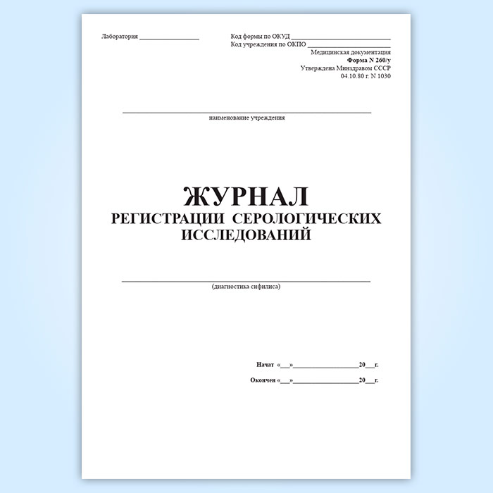 Журнал регистрации серологических исследований (диагностика сифилиса) (форма 260/у) в Черкесске купить