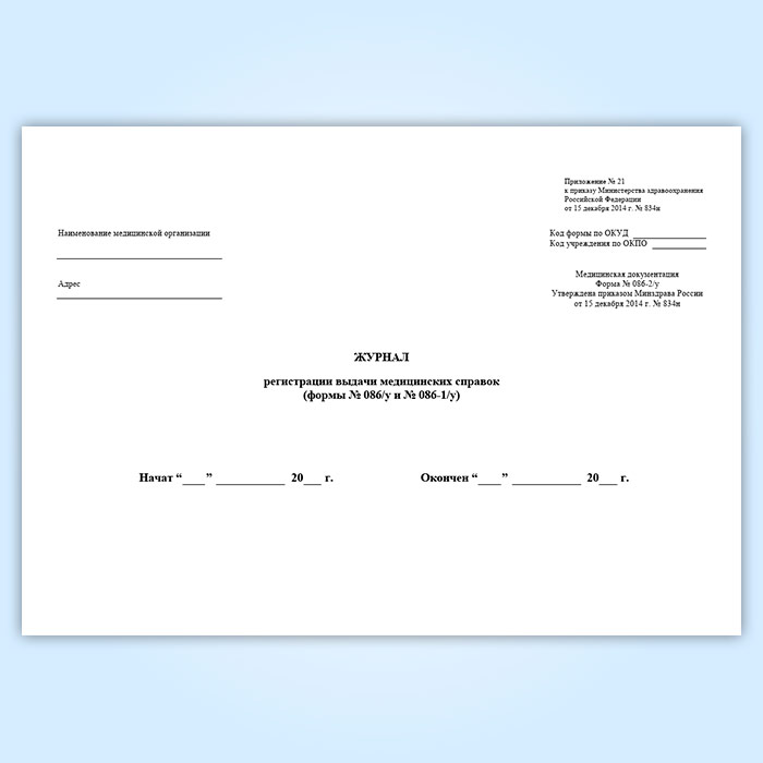 Журнал регистрации выдачи медицинских справок (форма № 086-2/у) в Черкесске купить