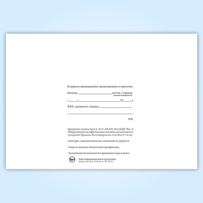 Вы получаете печатную продукцию прошнурованной и c местом для вашей печати в соответствии с действующими нормативными документами: