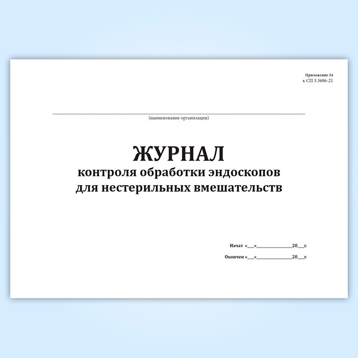 Журнал контроля обработки эндоскопов для нестерильных вмешательств (СанПиН 3.3686-21) в Черкесске купить