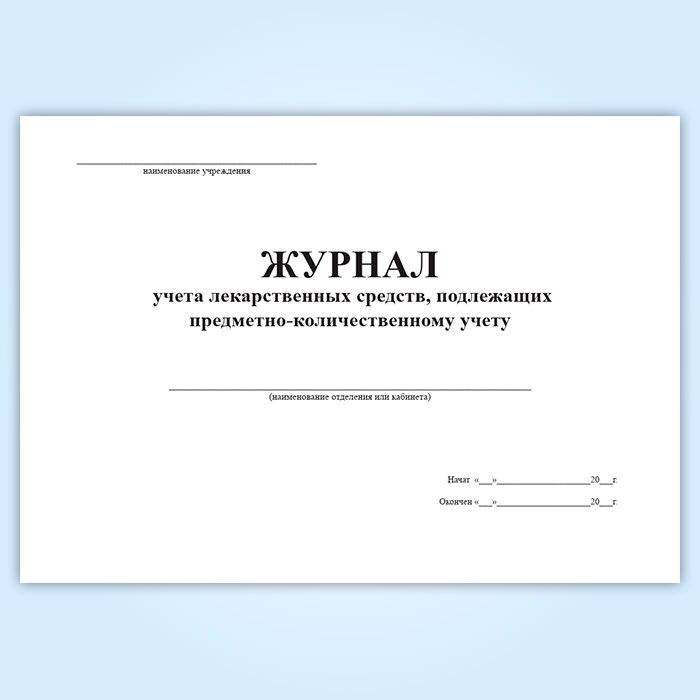 Журнал учета лекарственных средств, подлежащих предметно-количественному учету в Черкесске купить