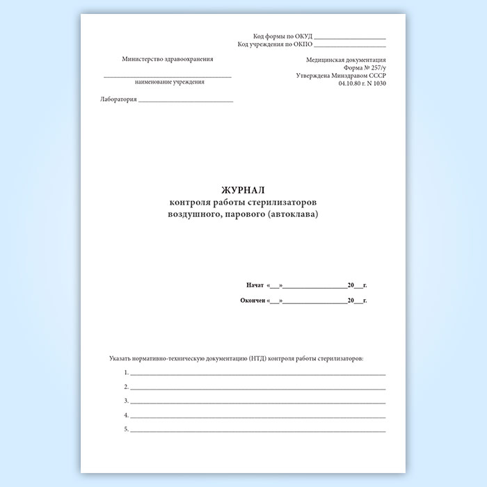 Журнал контроля работы стерилизаторов воздушного, парового (автоклава) (форма 257/у) в Черкесске купить