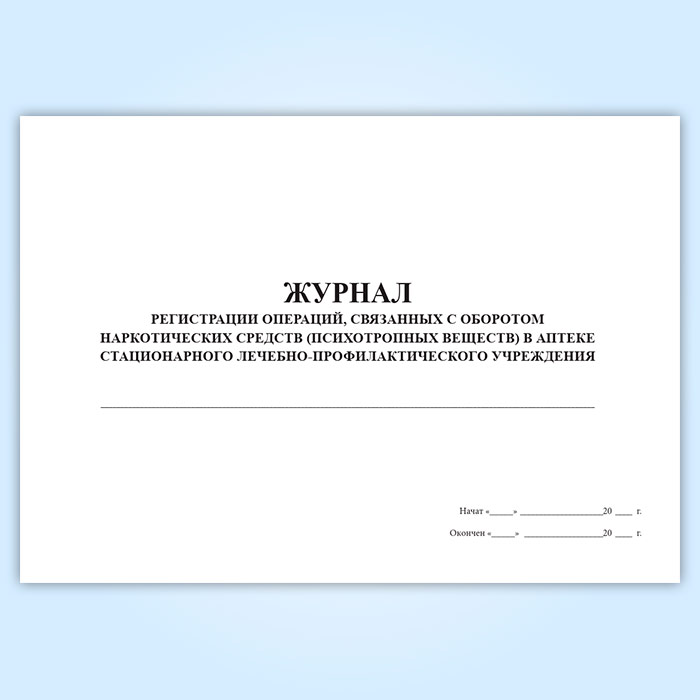 Журнал регистрации операций, связанных с оборотом наркотических средств и психотропных веществ в аптеке медицинской организации в Черкесске купить