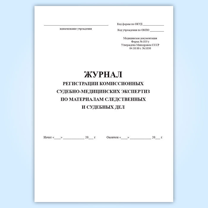 Журнал регистрации комиссионных судебно-медицинских экспертиз по материалам следственных и судебных дел (форма 183/у) в Черкесске купить