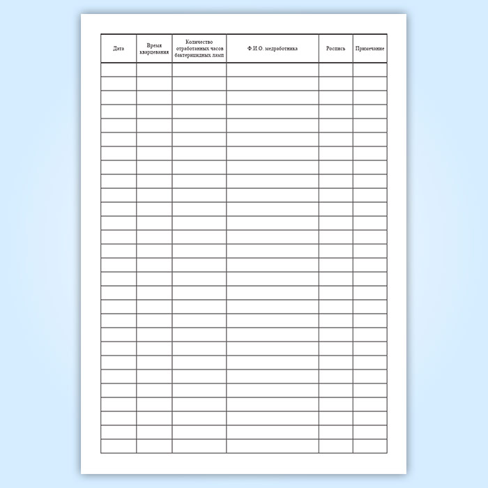 Журнал регистрации и контроля работы бактерицидной лампы в Черкесске купить