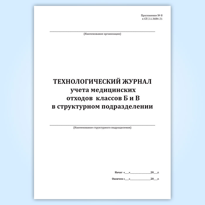 Технологический журнал учета медицинских отходов классов Б и В в структурном подразделении в Черкесске купить