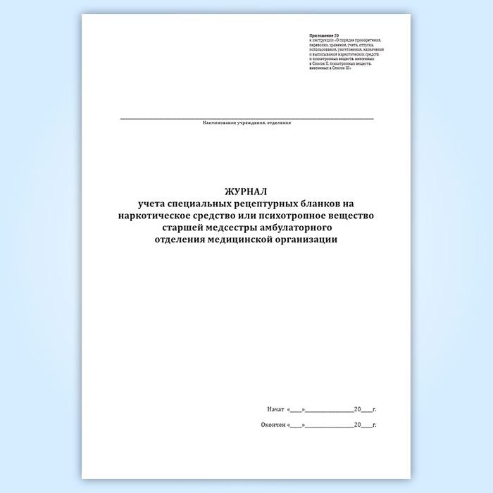 Журнал учета специальных рецептурных бланков на наркотическое средство или психотропное вещество старшей медсестры амбулаторного отделения медицинской организации в Черкесске купить