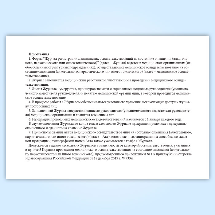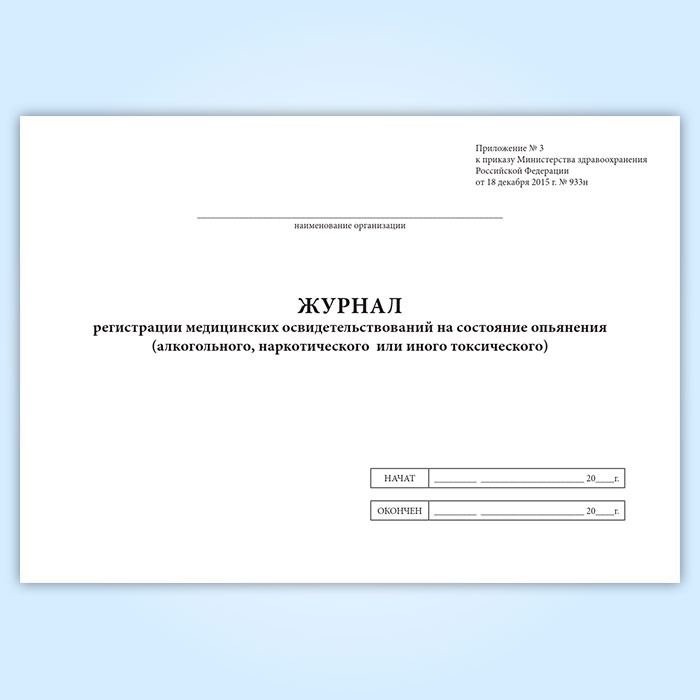 Журнал регистрации медицинских освидетельствований на состояние опьянения (алкогольного, наркотического или иного токсического) в Черкесске купить
