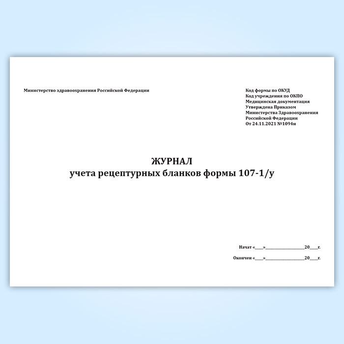 Журнал учета рецептурных бланков формы 107-1/у (новый) (Приказ Минздрава России от 24.11.2021 N 1094н) в Черкесске купить