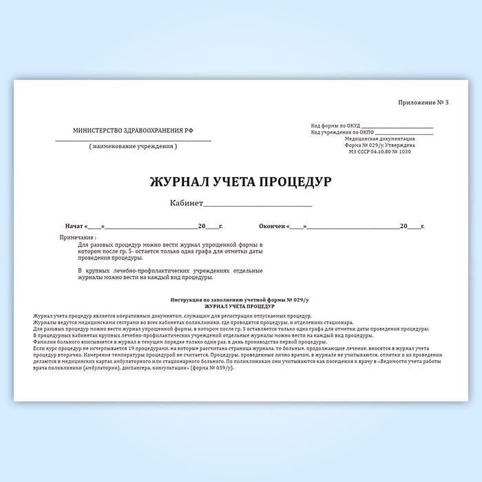 Журнал учета процедур (форма № 029/у) в Черкесске купить