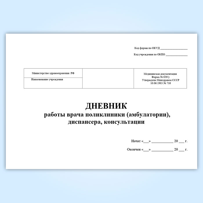 Дневник работы врача поликлиники (амбулатории), диспансера, консультации (форма 039/у) в Черкесске купить