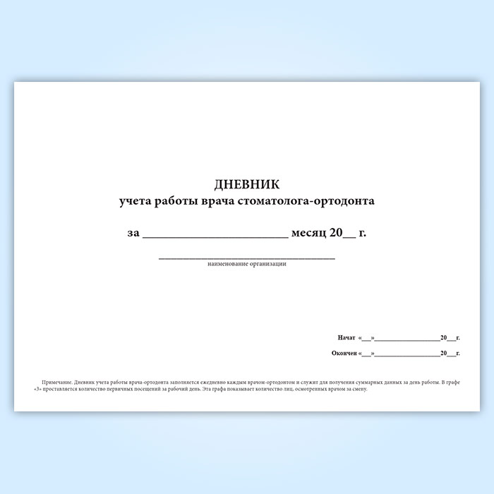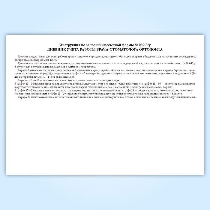 Дневник учета работы врача стоматолога-ортодонта (форма 039-3у) в Черкесске купить