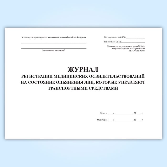 Журнал регистрации медицинских освидетельствований на состояние опьянения лиц, которые управляют транспортными средствами (форма 304/у) в Черкесске купить
