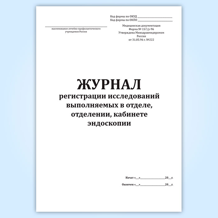 Журнал регистрации исследований выполняемых в отделе, отделении, кабинете эндоскопии (форма № 157/у-96) в Черкесске купить