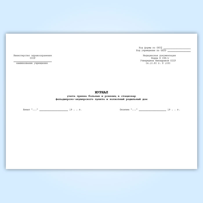 Журнал учета приема больных и рожениц в стационар фельдшерско-акушерского пункта, колхозного родильного дома (форма 098/у) в Черкесске купить