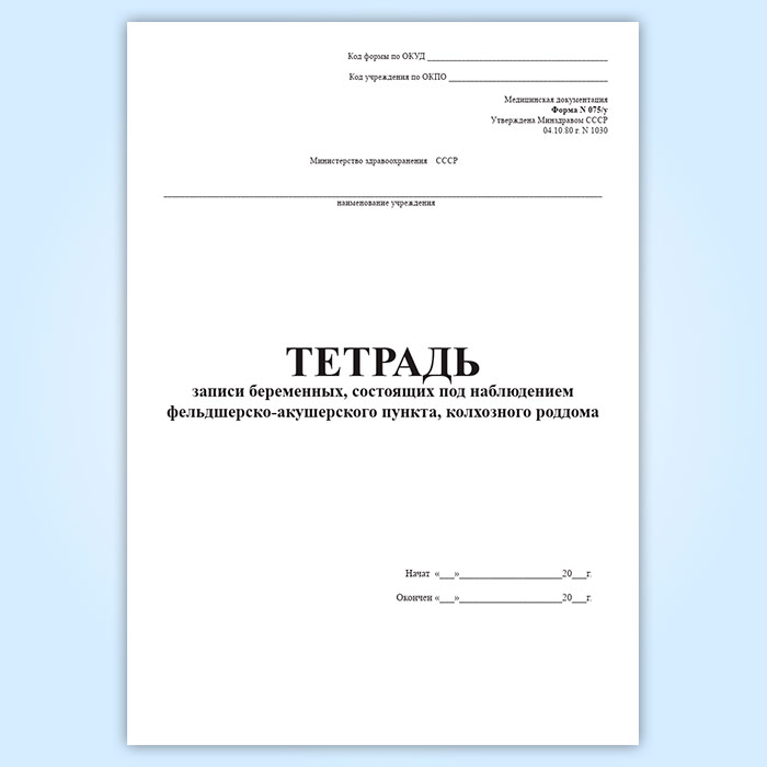 Тетрадь записи беременных, состоящих под наблюдением ФАП, колхозного роддома (форма 075/у) в Черкесске купить