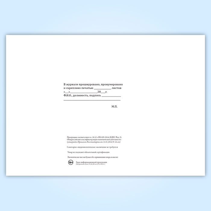 Вы получаете печатную продукцию прошнурованной и c местом для вашей печати в соответствии с действующими нормативными документами: