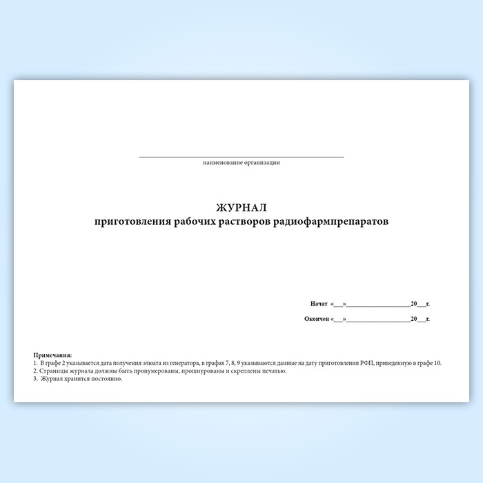Журнал приготовления рабочих растворов радиофармпрепаратов в Черкесске купить