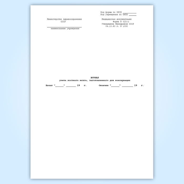 Журнал учета костного мозга, заготовленного для консервации (форма 023/у) в Черкесске купить