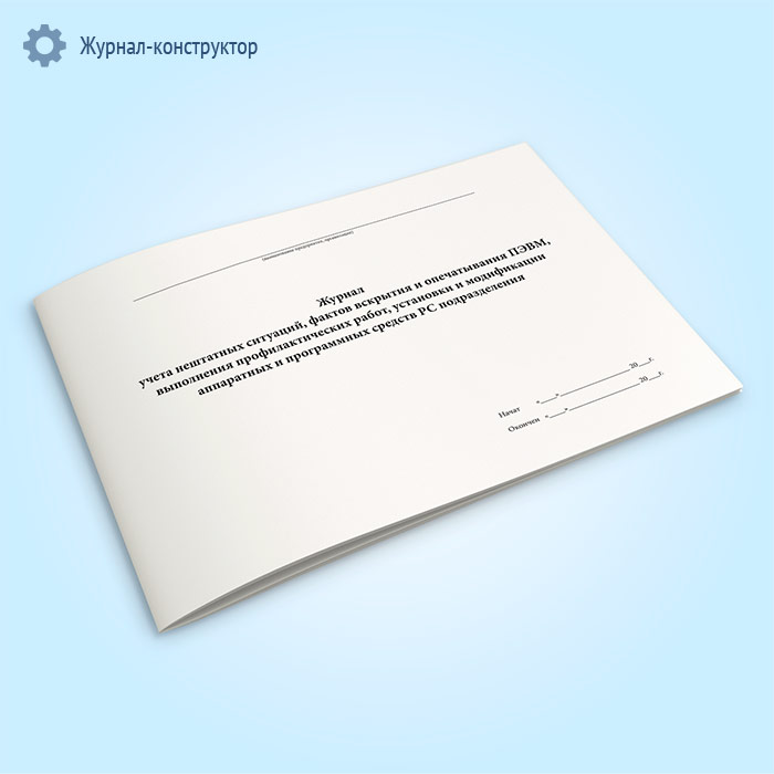 Журнал учета нештатных ситуаций, фактов вскрытия и опечатывания ПЭВМ, выполнения профилактических работ, установки и модификации аппаратных и программных средств РС подразделения в Черкесске купить