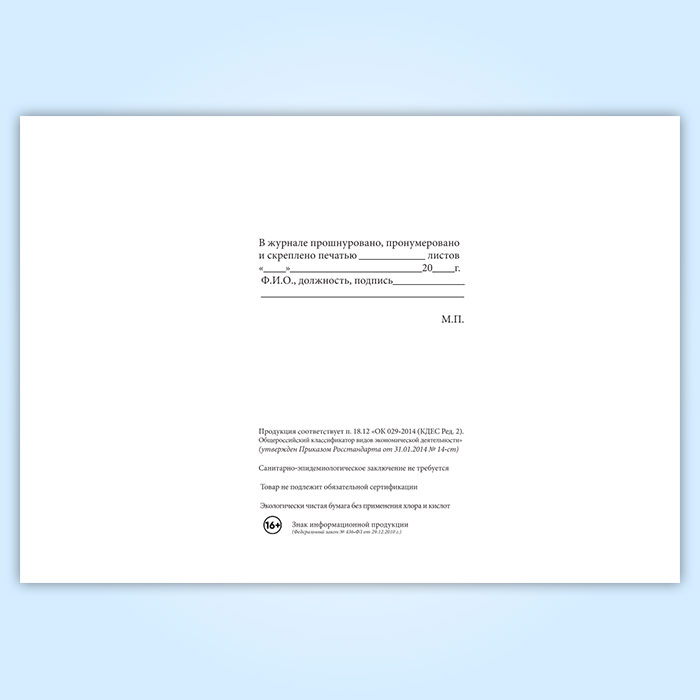 Вы получаете печатную продукцию прошнурованной и c местом для вашей печати в соответствии с действующими нормативными документами: