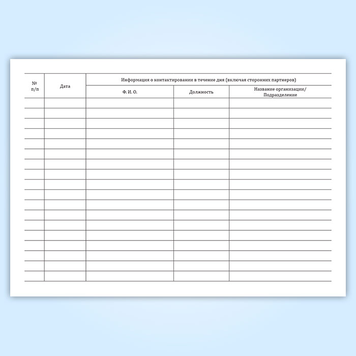 Журнал учета контактов сотрудника (в течение дня) в Черкесске купить