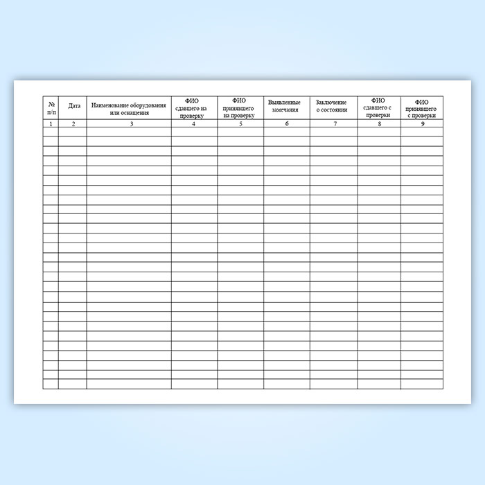 Журнал регистрации сдачи и выдачи оборудования и средств технического оснащения НАСФ на проверку в Черкесске купить