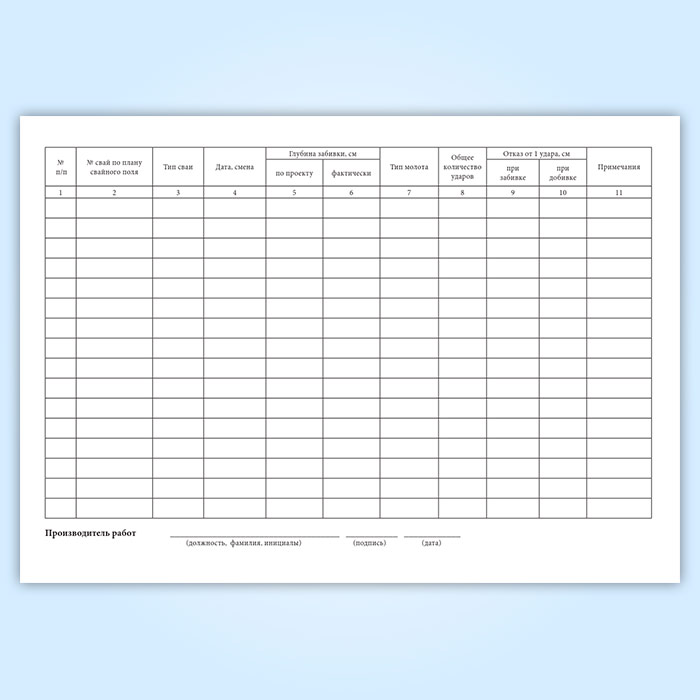Журнал сводных ведомостей забитых свай в Черкесске купить