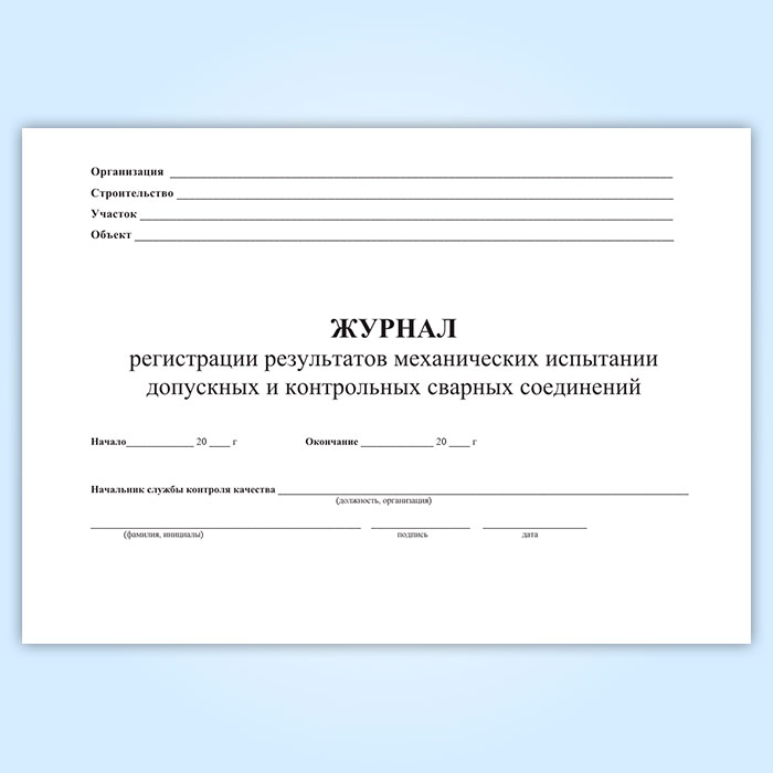Журнал регистрации результатов механических испытаний допускных и контрольных сварных соединений в Черкесске купить