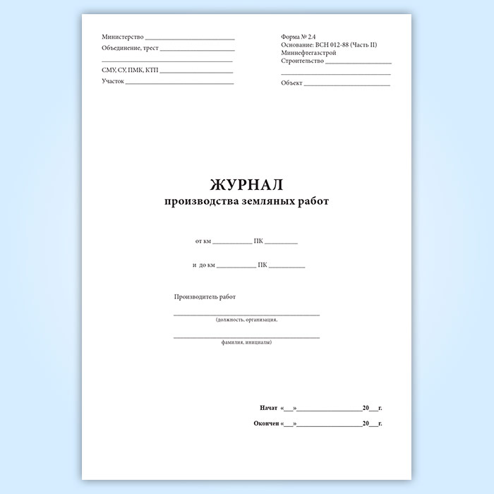 Журнал производства земляных работ (форма 2.4) (трубопроводы) в Черкесске купить