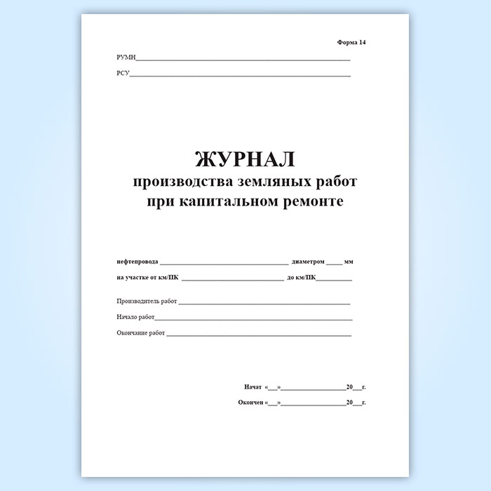 Журнал производства земляных работ при капитальном ремонте (форма 14) в Черкесске купить