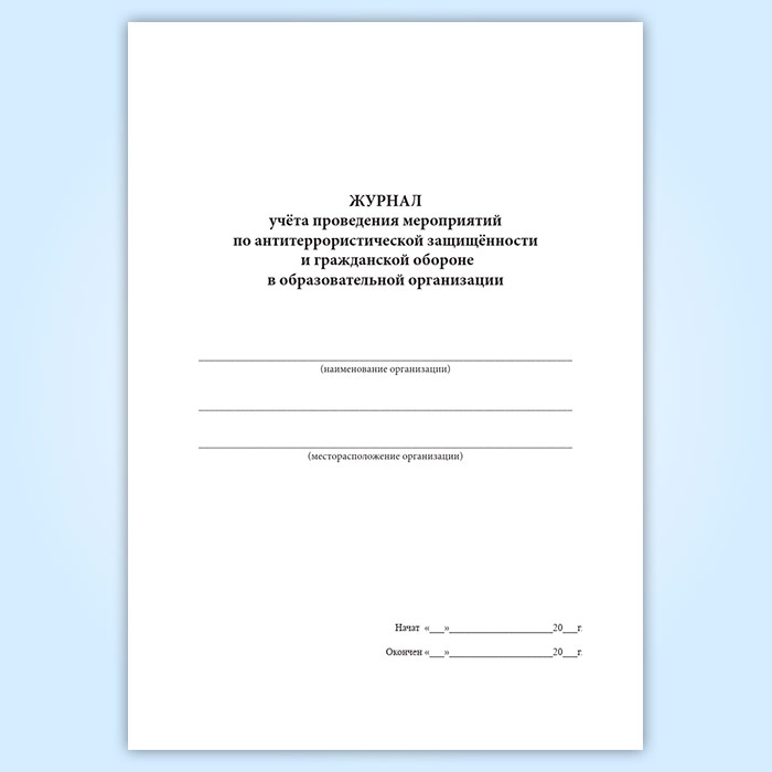 Журнал учета проведения мероприятий по антитеррористической защищенности и гражданской обороне в образовательной организации в Черкесске купить