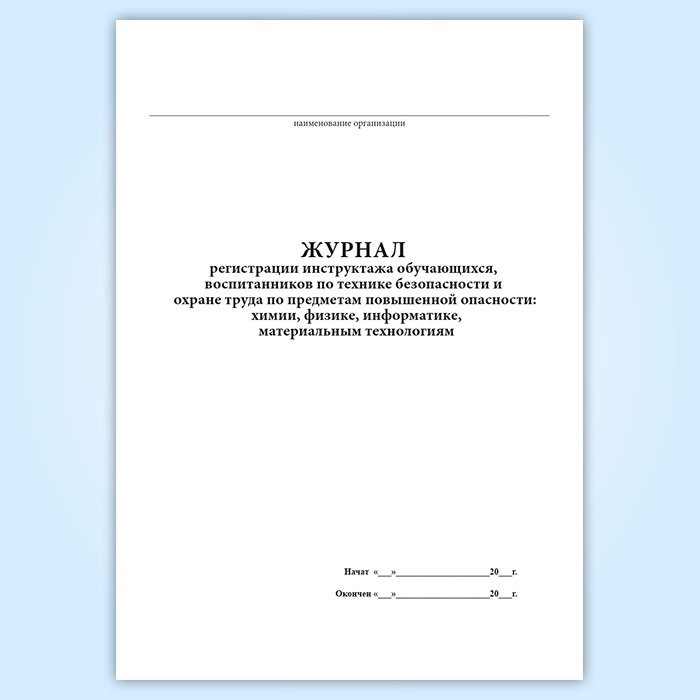 Журнал регистрации инструктажа обучающихся, воспитанников по технике безопасности и охране труда по предметам повышенной опасности: химии, физике, информатике, материальным технологиям в Черкесске купить