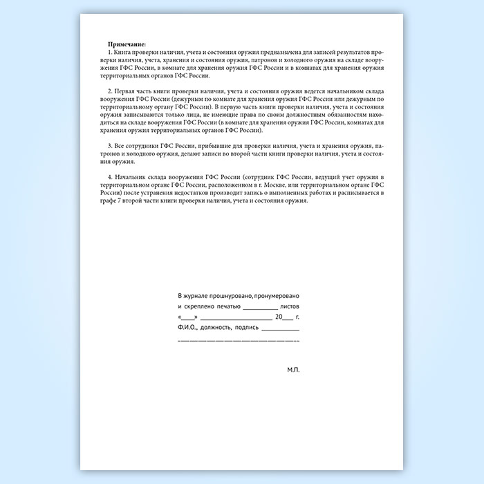Книга проверки наличия, учета и состояния оружия (форма 20) в Черкесске купить