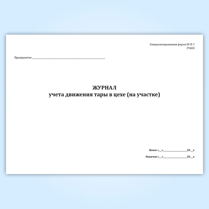 Журнал учета движения тары в цехе (форма П-7 тара) в Черкесске купить