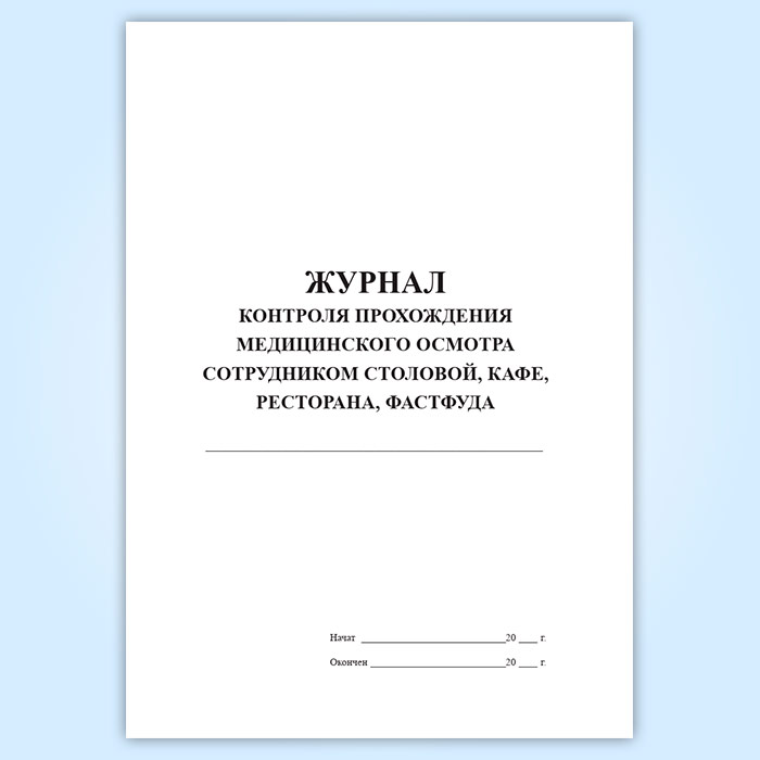 Журнал контроля прохождения медицинского осмотра сотрудником столовой, кафе, ресторана, фастфуда в Черкесске купить