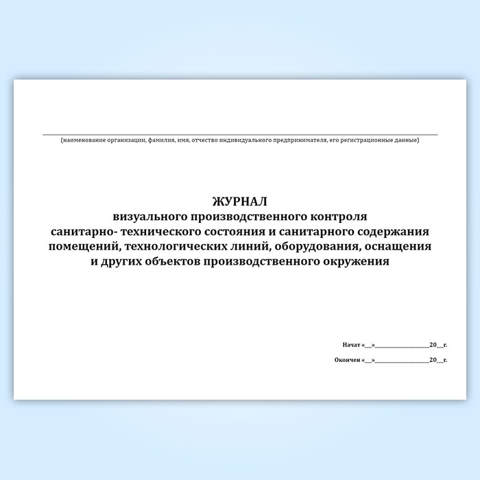 Журнал визуального производственного контроля санитарно-технического состояния и санитарного содержания помещений, технологических линий, оборудования, оснащения и других объектов производственного окружения в Черкесске купить